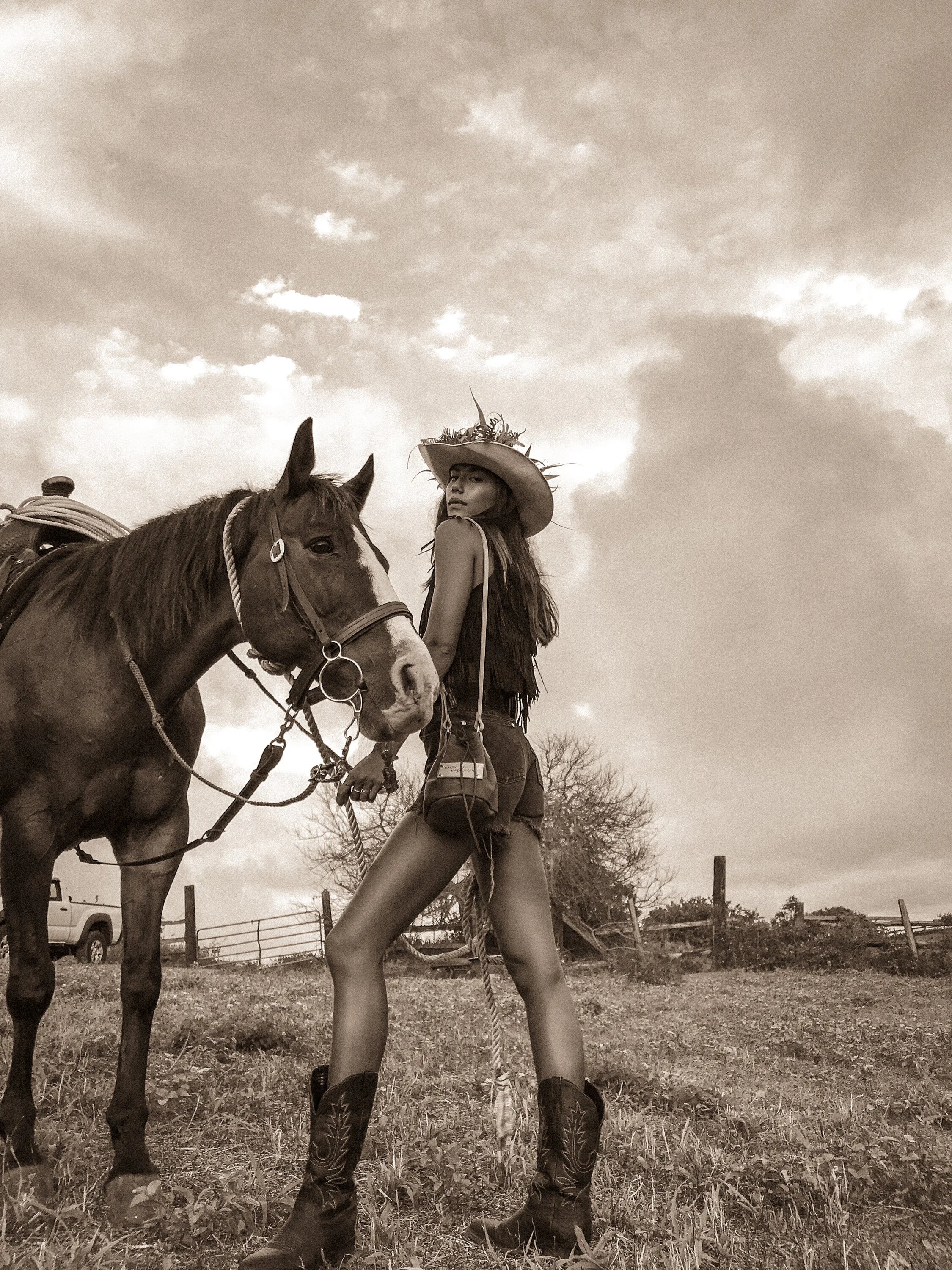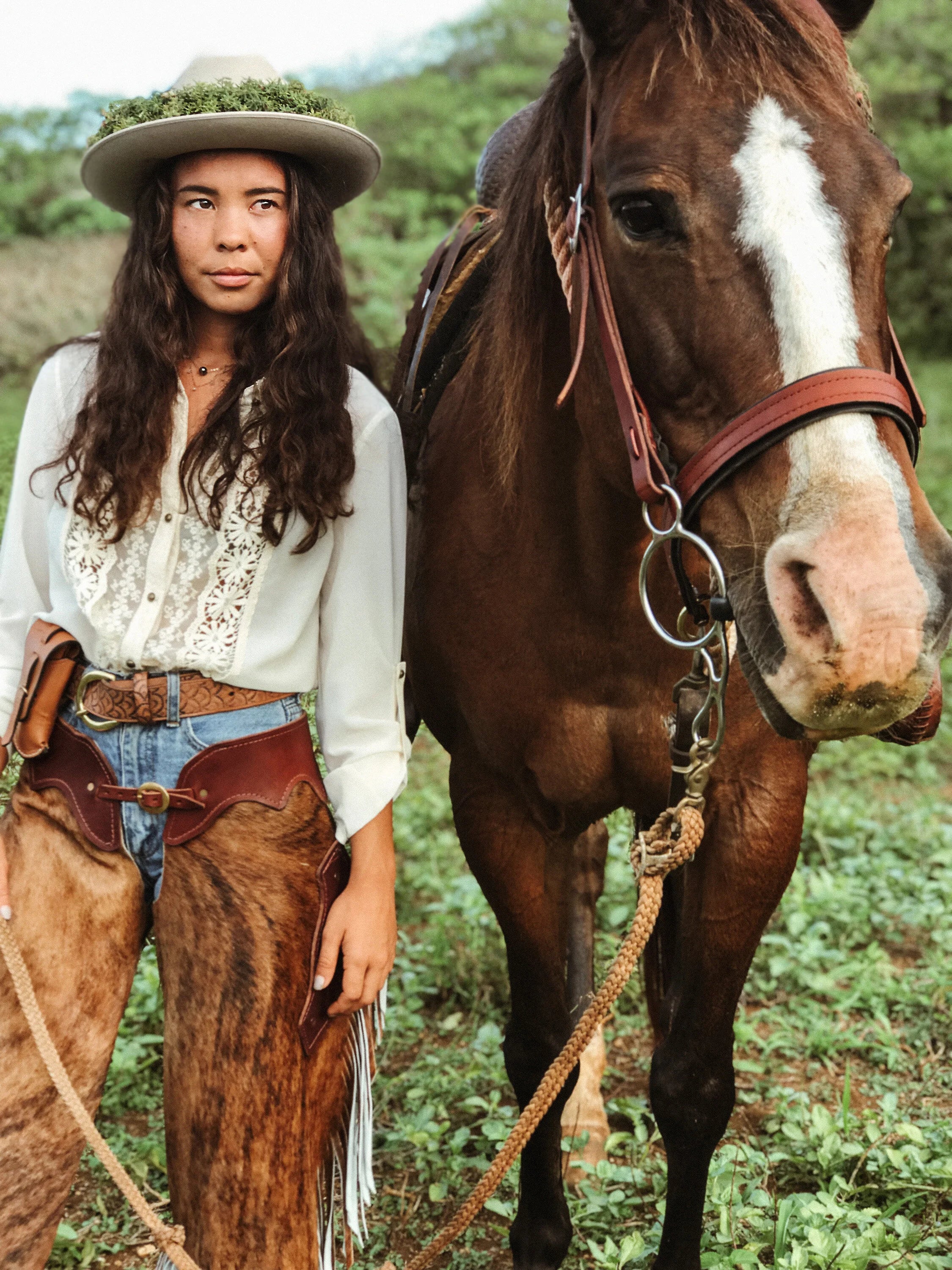 This collection was inspired by designer, Taira Barron, who has drawn inspiration in from packing out deer and elk on the back of mules to herding cattle in the snowy winds among the wild ranch lands of Colorado. Apart of the Old West Meets Hawai'i she has also created the Ranch Hand tack line. This new line is built for the working cowgirls and cowboys who continue to be apart of a dying art. It’s dedicated to those men and women who toil with blood, sweat, and tears for a greater cause then themselves by putting food on the table for families across our country.